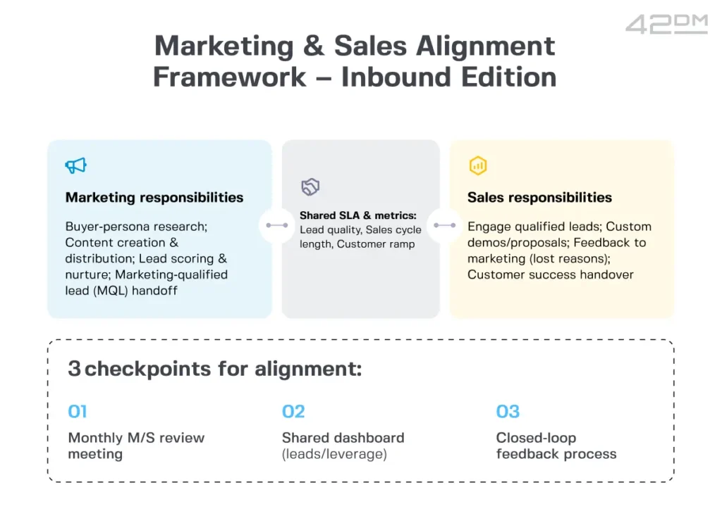 Integrate attribution models, implement lead scoring, and unify CRM + MAP systems to ensure qualified leads get follow-up fast. Layer in account-based marketing (ABM) to target strategic opportunities.
