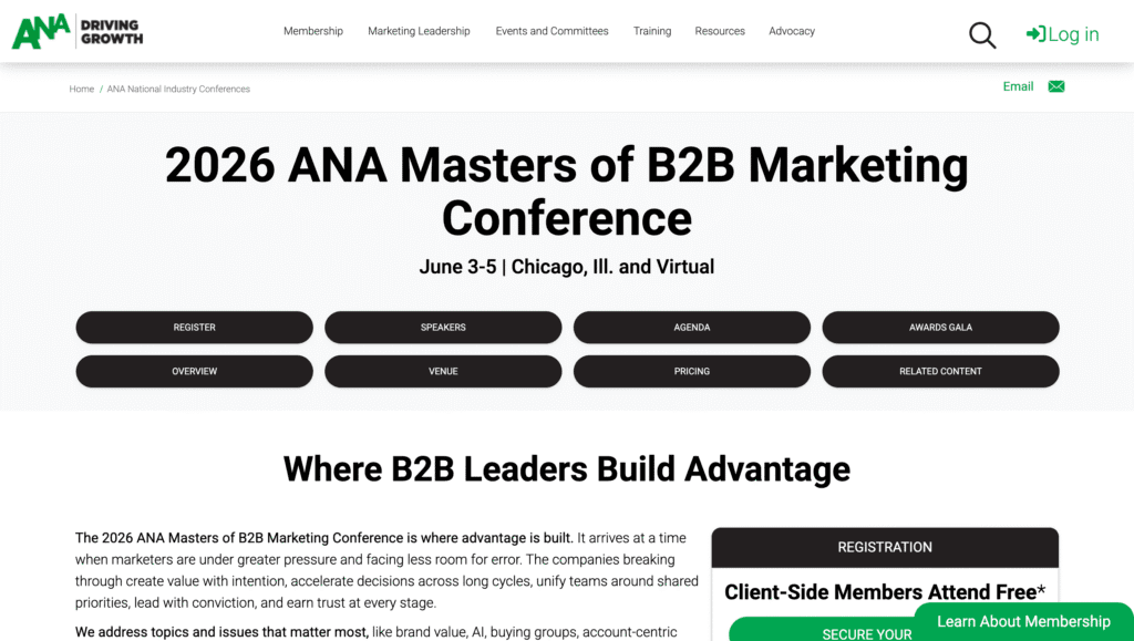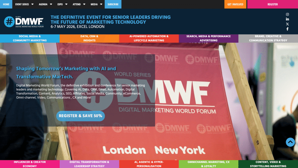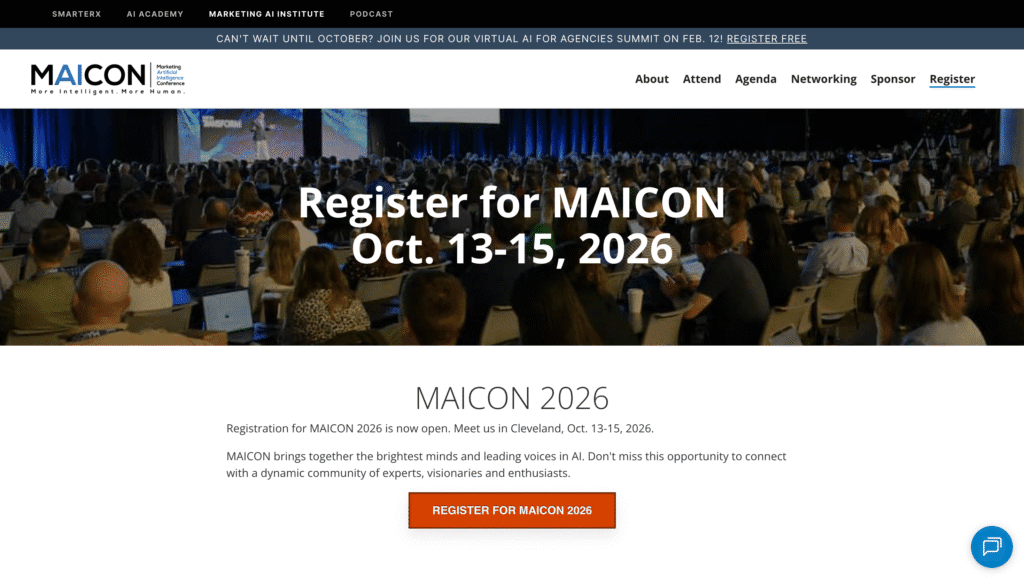 B2B Marketing Exchange focuses entirely on practitioners. No vendor pitches, just tactical sessions from marketing leaders solving the same problems you face. The 2026 agenda covers AI’s transformative impact on B2B marketing, from lead scoring to content personalization.